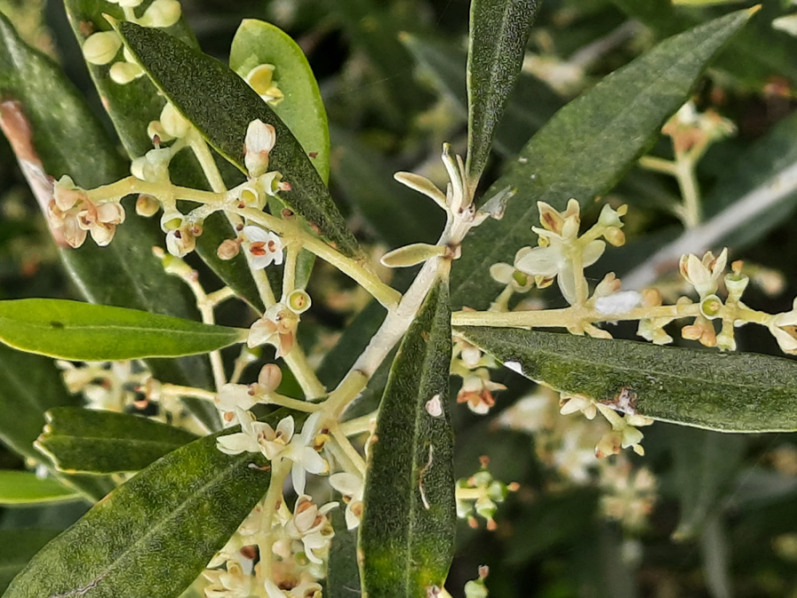 Op dit moment van schrijven (april 2021) staan de olijfbomen volop in bloei.