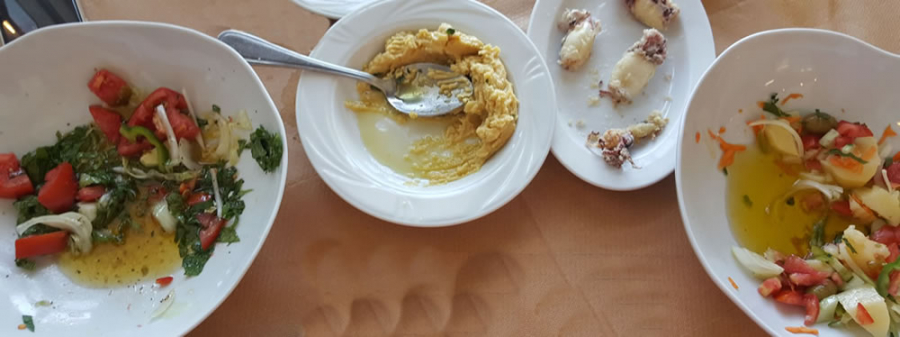 Je ziet dat voor deze lunch ongeveer een halve liter olijfolie is gebruikt.