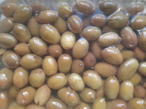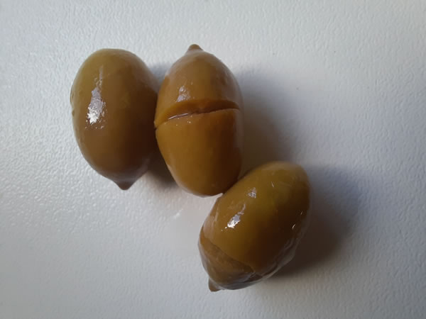 Onderstaand een foto van de gekneusde olijven.